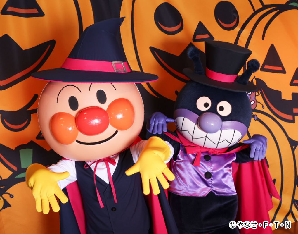 魔法使い姿のアンパンマンとドラキュラに仮装したばいきんまんに会えるのは今だけ。