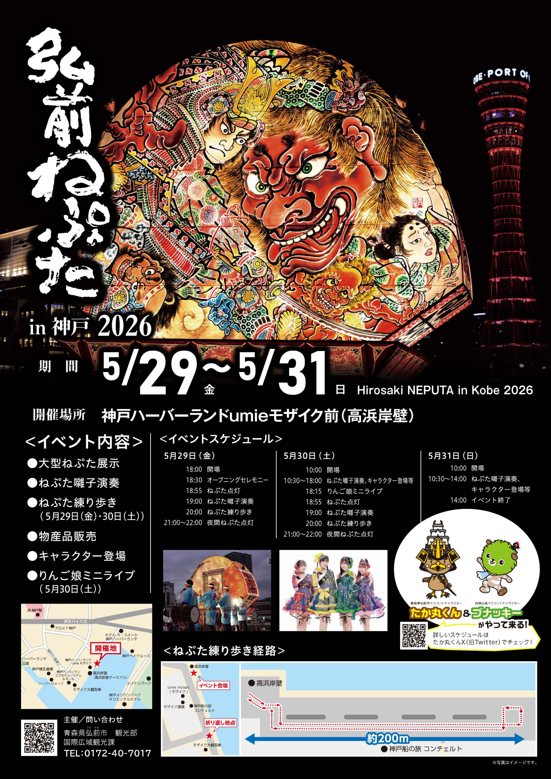 【青森県弘前市の「ねぷた」が神戸に登場!】 弘前のねぷたまつりを体感できる…