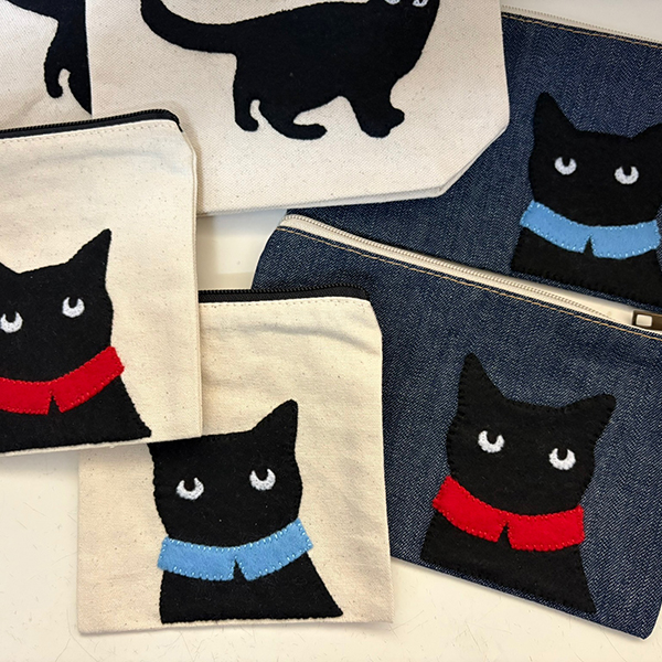 - 黒猫アップリケや刺繍バッグ、ぬいぐるみ、チャーム等いろいろな猫小物を作っています