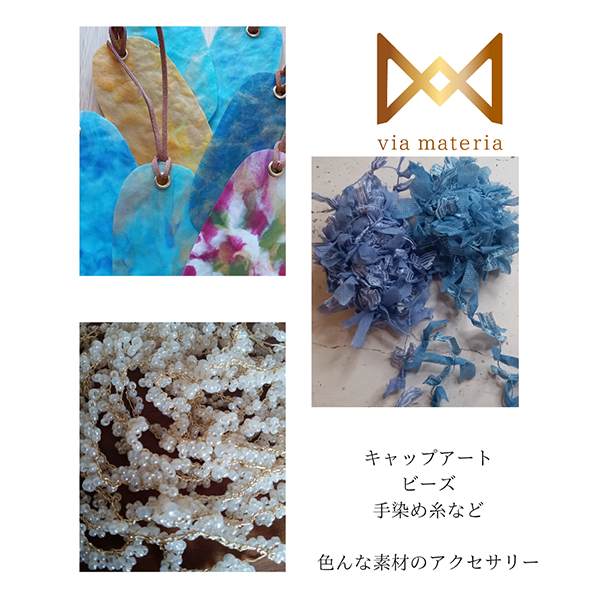 - 『キャップアート』というアップサイクルアートのアクセサリーや雑貨、ビーズや染め糸のオリジナルアクセサリーを展開しています。