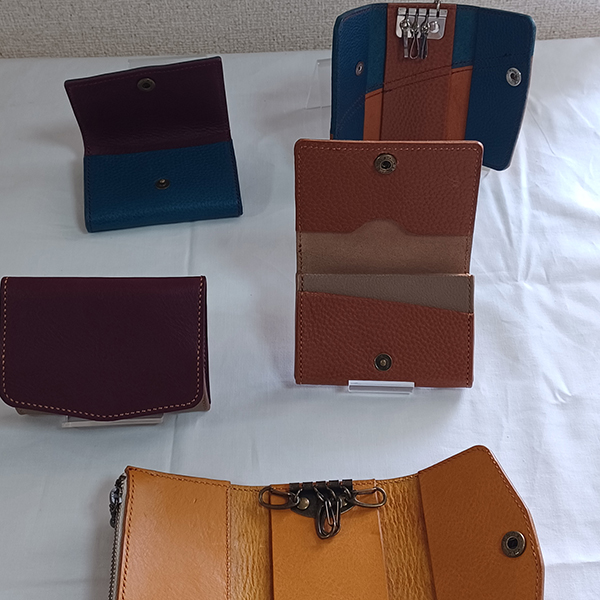 財布、名刺入れ、通帳ケース等々手作りの風合いをお楽しみ下さい。