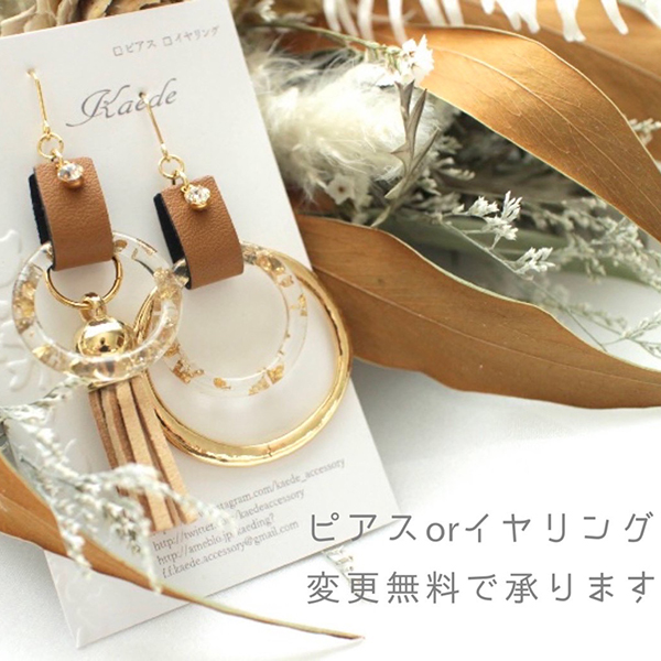本物のお花とこだわりのタッセルのハンドメイドアクセサリーです。アレルギー対応、ピアスイヤリング変更対応可能です。