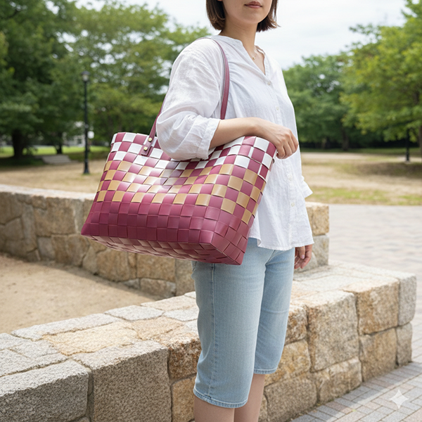 タイ・ベトナム・国産から厳選した上質なバンドを使用し、一つひとつ丁寧に「大人可愛いプラカゴバッグ」を制作しています。