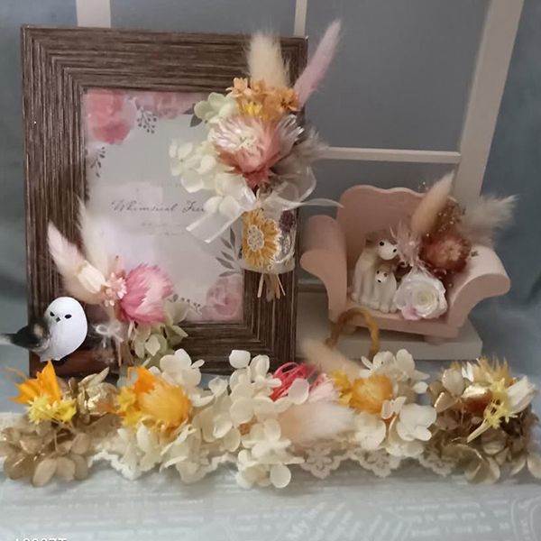 - イロハは季節に合わせてプリザーブドフラワーとエッセンシャルアロマオイルの作品を作っております。12月はクリスマスツリーやしめ縄も2月は春に向けて香りは花粉症対策のお手伝いができるアロマとともに春に向けての明るくて優しい雰囲気の作品を