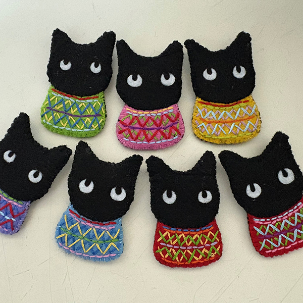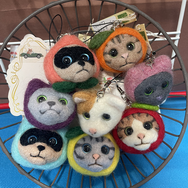 黒猫アップリケバッグや雑貨、ニット小物、ぬいぐるみ