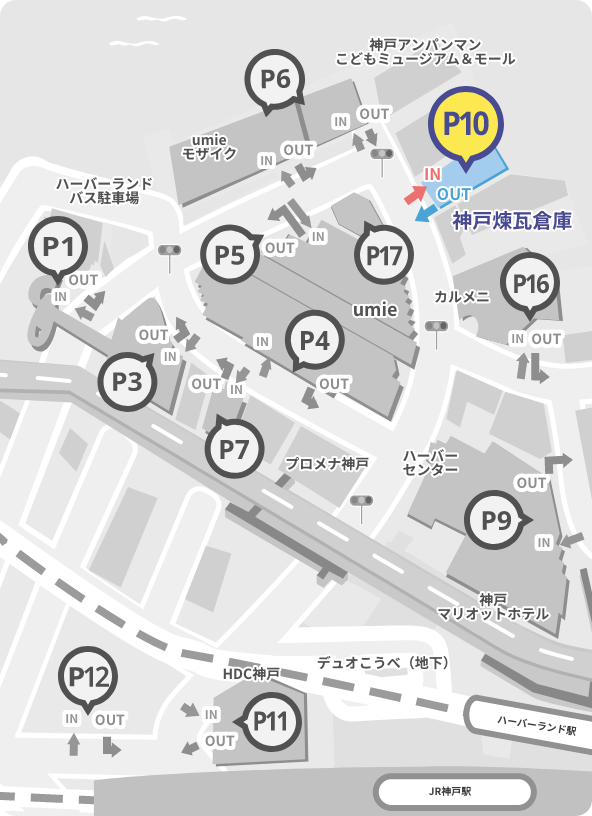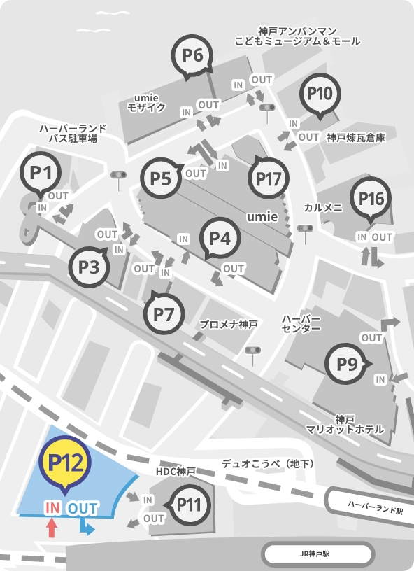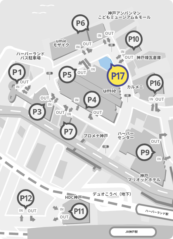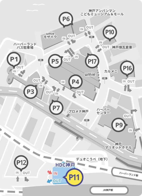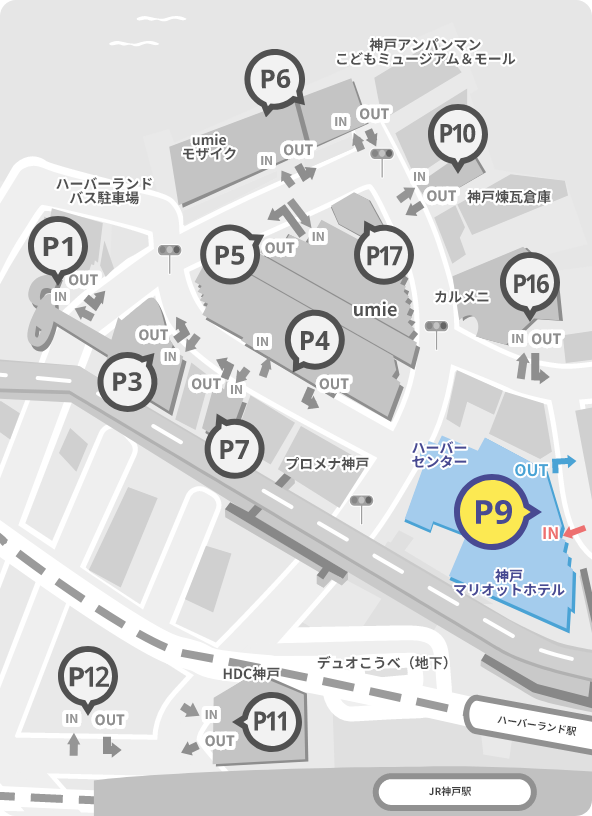※ハーバーランドカード使用の場合3,000円以上で総合インフォメーションにて2時間無料券発行 - 近くの施設