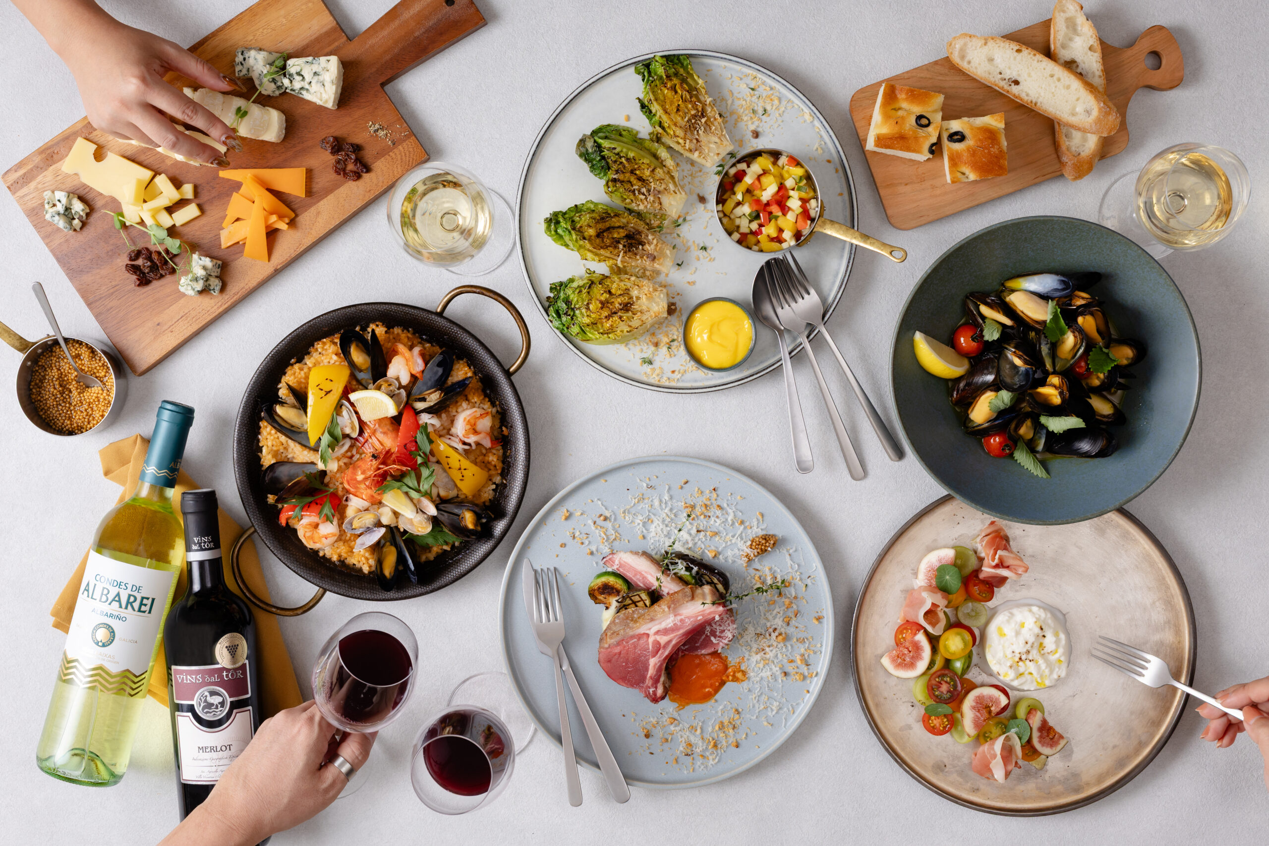 ピンチョスやパエリア、グリルステーキなど、素材を活かしたシンプルな味わいをベースに、彩りとアクセントを加えたメニューをご用意しています。