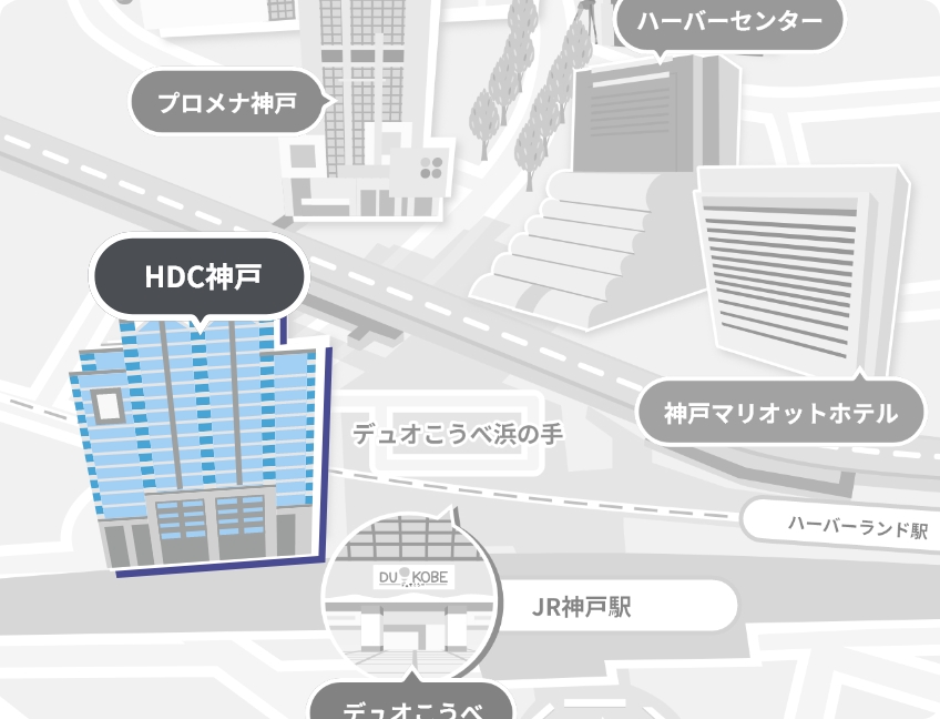 JR神戸駅前にあるHDC神戸(ハウジング・デザイン・センター神戸)は、キッチン・バスなどの住宅設備や家具、インテリア、リフォーム、不動産情報、カルチャースクールなど、住まいと暮らしに関する様々な種類のショールーム・ショップが集まった総合施設です。